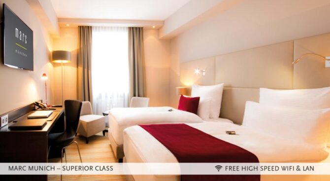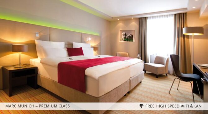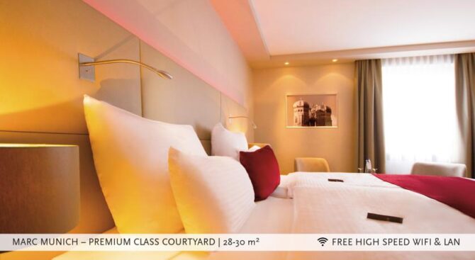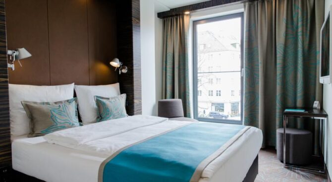 Очень привлекательный, большой отель в центре Мюнхена. В дизайне его просторных номеров нарушены все традиции классического оформления. Множество ярких акцентов, картины, оригинальные дизайнерские кресла и сочетание, казалось бы, несочетаемых цветов, создают неповторимую, легкую атмосферу. Среди 180 номеров отеля гости могут выбрать подходящий для себя уровень комфорта, начиная от «стандарта» и заканчивая люксами со спальней с гостиной.