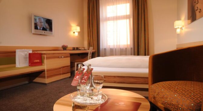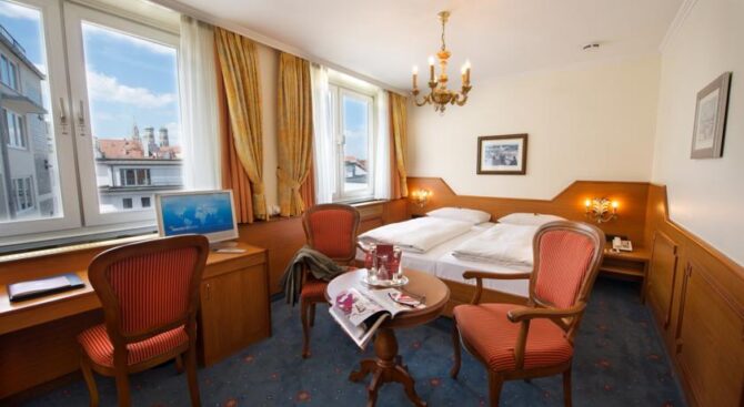 Отель имеет уровень классности 4 звезды и расположен рядом с площадью Мариенплац. Номера, в которых размещают гостей, оформлены в лучших европейских традициях. Особый комфорт создают большие мягкие кровати, элементы дизайна в виде картин и деревянной обшивки стен, роскошные ковры и шторы. В каждом номере есть ТВ панель и бесплатное интернет-соединение.