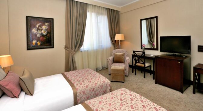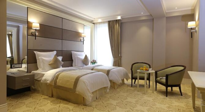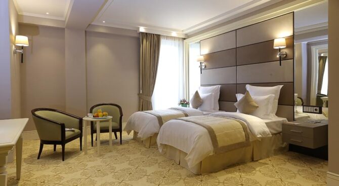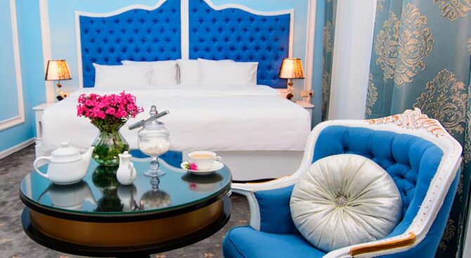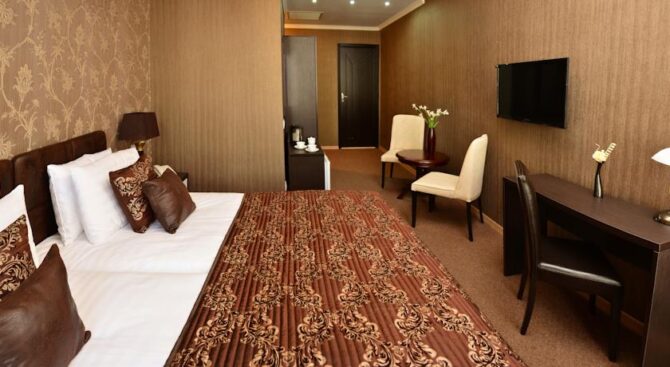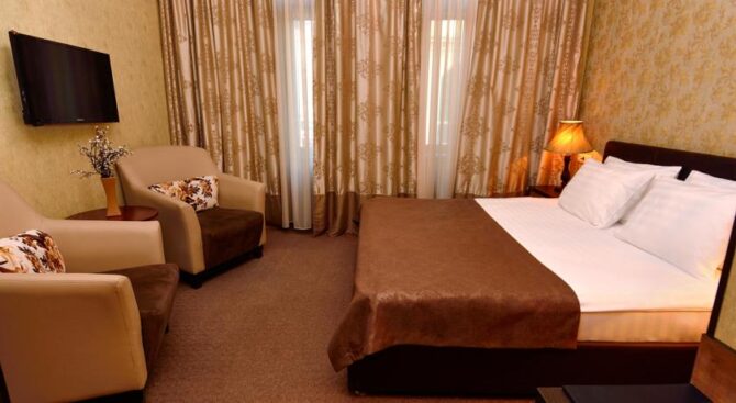 Высокий уровень сервиса и роскошное убранство номеров отличают этот отель. Все номера обставлены качественной деревянной мебелью, есть телевизор, санузел с ванной и принадлежностями для душа. Круглосуточно работает служба «Консьерж» и обслуживание номеров.