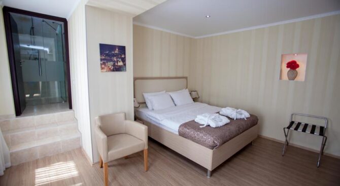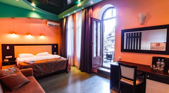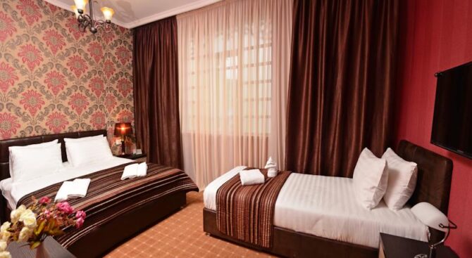 Двухэтажный уютный отель, расположенный в нескольких шагах от проспекта Руставели. Номерной фонд представлен 13 номерами с классическим интерьером и дизайном. Все номера светлые и просторные. Спальная зона дополнена диваном с креслом и столиком для завтрака. Окна некоторых номеров выходят в сад, который особенно красив весной и летом.