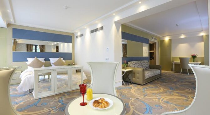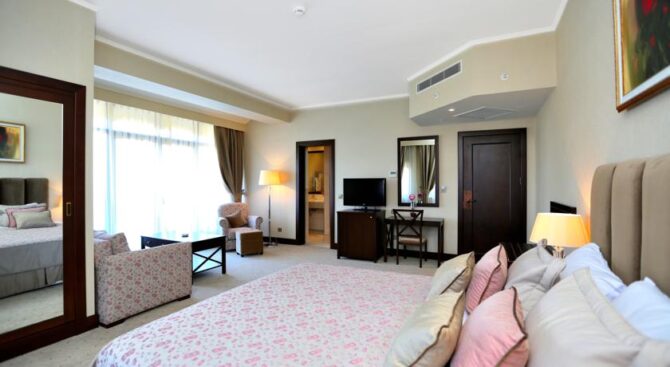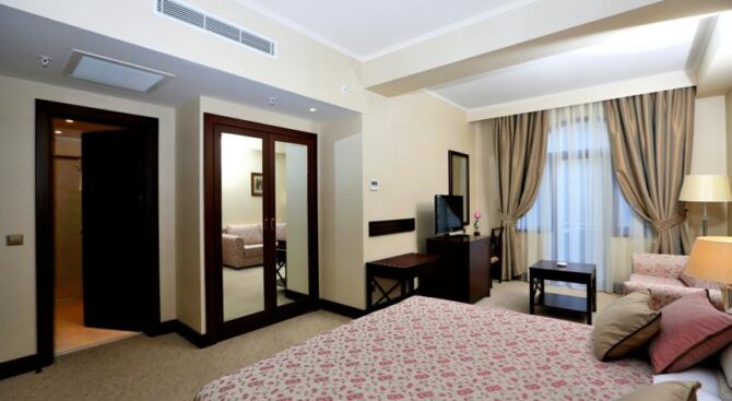 Номера Radisson Blu Iveria Hotel – это утонченная изысканность и элегантность. Из огромных панорамных окон, которые полностью занимают одну из стен комнаты, можно наслаждаться бесконечно красотой Кавказских гор и видом старинного Тбилиси.