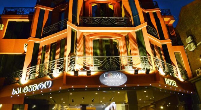 Бутик-отель «Коралл» расположен в Старом городе в окружении архитектурных памятников и объектов культуры. Рядом находятся национальные театры Тбилиси, а также главная площадь города. В концепции дизайна интерьеров просматривается национальная грузинская тематика, аккуратно вплетенная в классический европейский стиль.