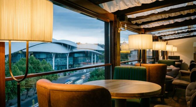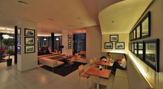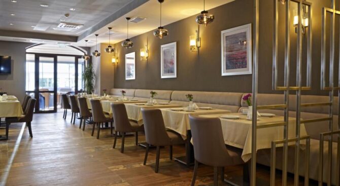 Каждое утро в ресторане отеля сервируют завтраки в формате «шведский стол». А в обед здесь можно заказать ланч и пообедать с коллегами или провести семейный вечер за сытным ужином с блюдами национальной или кавказской кухни. Отдохнуть, расслабиться и пообщаться с друзьями можно в баре отеля, где представлен огромный выбор алкогольных и безалкогольных напитков.