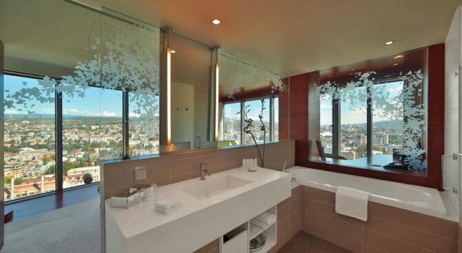 Высотный отель в самом центре Тбилиси с современными номерами, оснащенными телевизорами, кондиционерами, принадлежностями для чая. Разместившись здесь, можно в любое время пользоваться тренажерным залом, SPA-салоном, бассейнами. На территории всего отеля действует WI-FI.