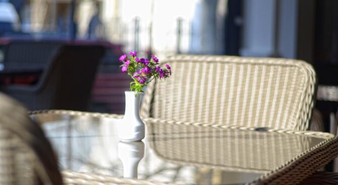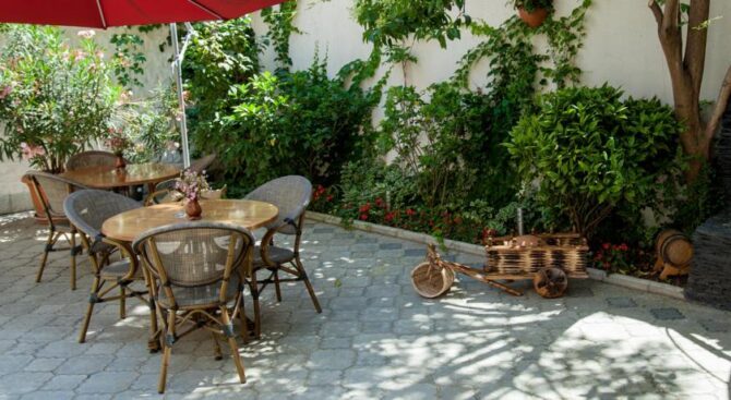 Во внутреннем дворе отеля расположен небольшой бар под открытым небом с уютными столиками под яркими зонтиками. Также есть небольшое кафе внутри отеля, где по утрам сервируют завтраки «шведский стол». Повара отеля готовят блюда европейской и национальной кухни. Завтрак подается континентальный.