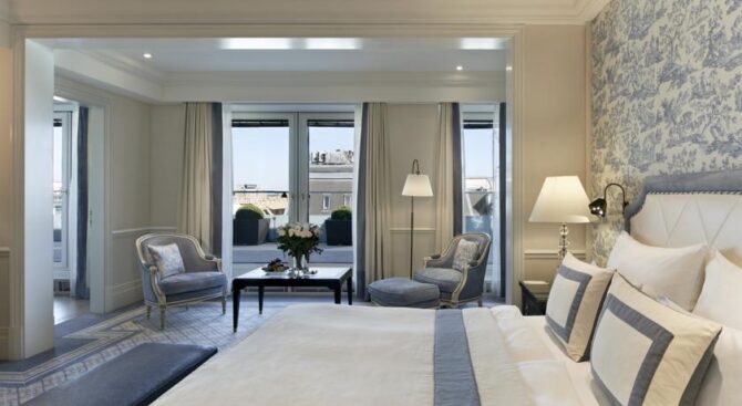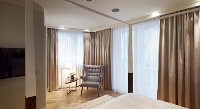 Все номера отеля имеют вид на город и Венскую оперу. В зависимости от категории в них может быть камин, терраса, обеденная зона, сауна и комната для занятий спортом.