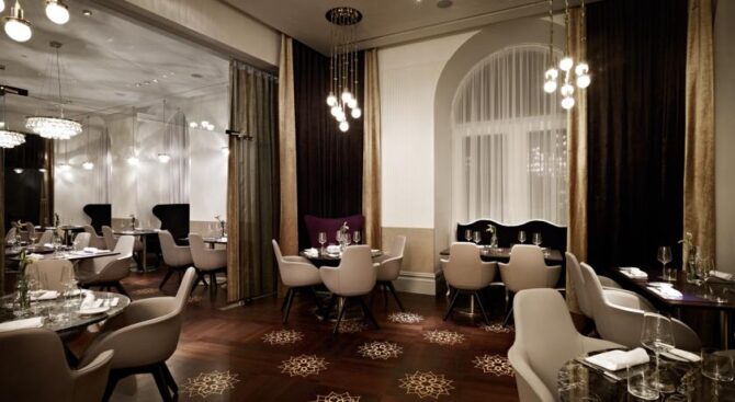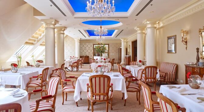 Ресторан предлагает гостям попробовать изысканные блюда, над которыми трудились два шеф-повара отеля. В настоящей венской кофейне подают завтрак с шампанским. Здесь же можно попробовать известный торт Империал, впервые поданный на открытии отеля Францу Иосифу. Салонный бар, стилизованный под конец XIX века, приглашает послушать живую фортепианную музыку, в исполнении молодых талантливых пианистов и попробовать фирменные напитки.