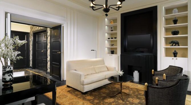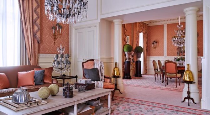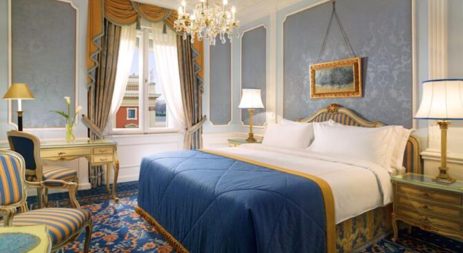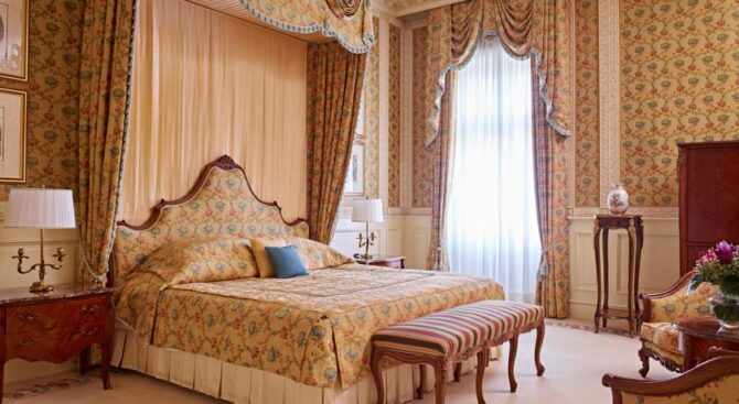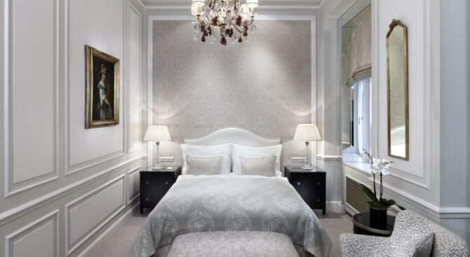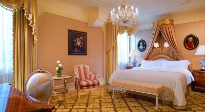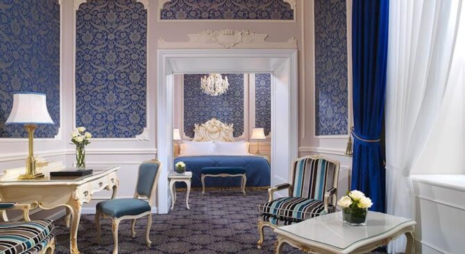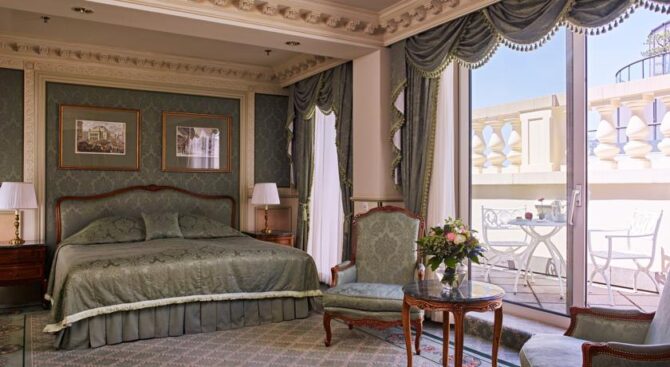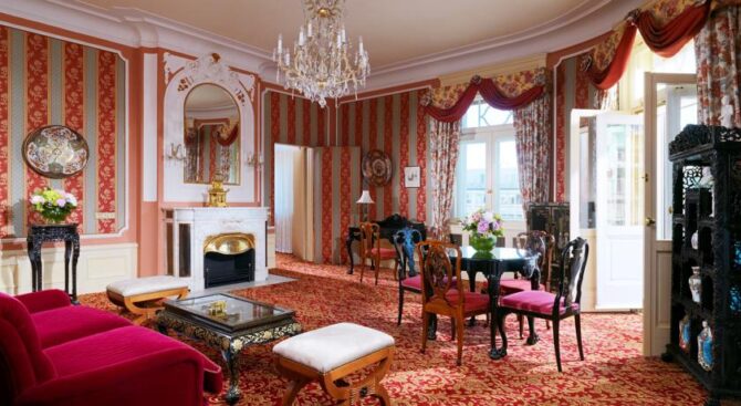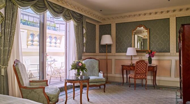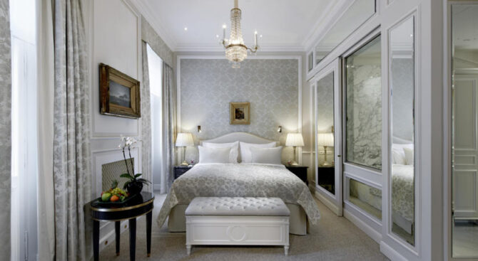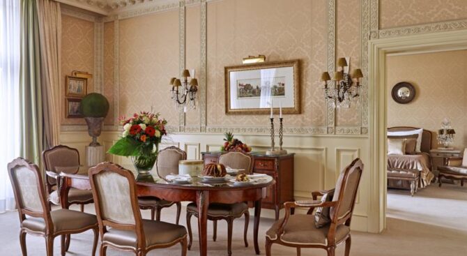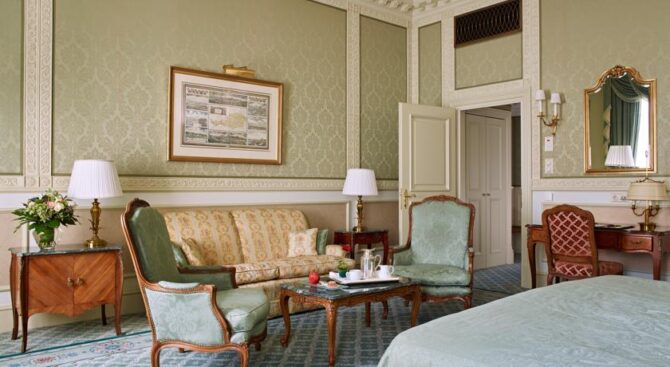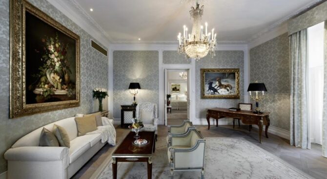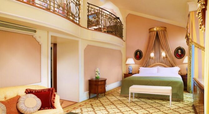 В номерах отеля царит поистине королевская атмосфера, способная покорить самого взыскательного гостя. Здесь повсюду антикварные предметы, стены отделаны шелком, в ванных комнатах мрамор.