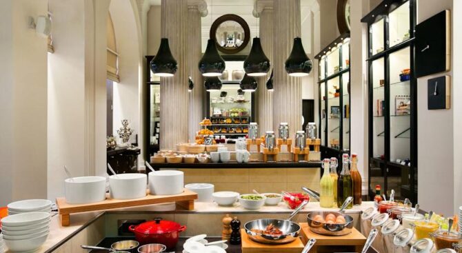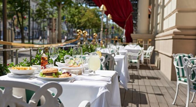 Ресторан отеля знаменит своими классическими кулинарными шедеврами. В теплое время года трапезы проводят на террасе под открытым небом, в холодную погоду для этого используют помещение зимнего сада. Попробовать различные напитки и коктейли можно в американском баре.