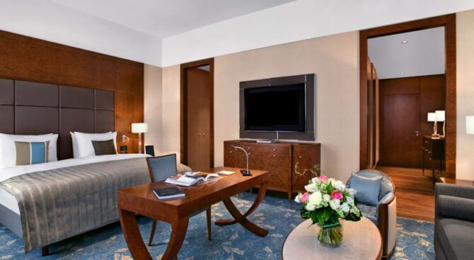 Гостиница имеет собственный оздоровительный центр, зону спа, салон красоты, парикмахерскую, сауну, поле для гольфа. На крыше располагается фитнес-центр.