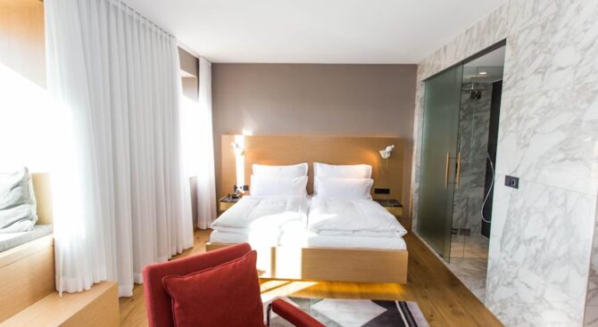 Отель располагает 143 номерами с паркетным полом и деревянной мебелью в неповторимом австрийском стиле. Все они имеют хорошую шумоизоляцию и оборудованы звуконепроницаемыми окнами.