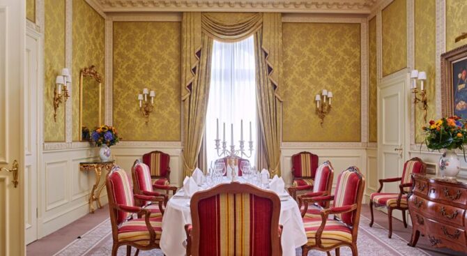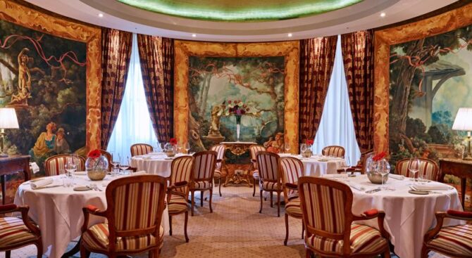 Изысканный ресторан под руководством шеф-повара Филиппа Фогеля имеет звезду Мишлен. Меню содержит лучшие блюда со всех уголков мира. Отдельное питание предусмотрено для детей. В лаундж-баре к услугам гостей огромный выбор сигар из лучших сортов табака, бренди и ром.