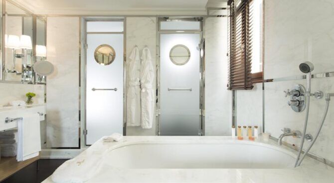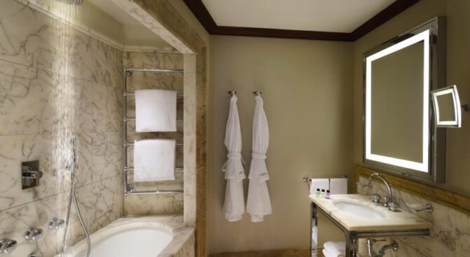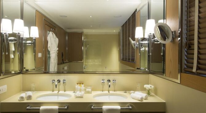 В номерах класса люкс есть развлекательная станция для айпада и телевизор с плоским экраном. Обязательно есть мини-бар, кондиционер, ванная комната оборудована мрамором, предусмотрены все туалетные и банные принадлежности для гостей.