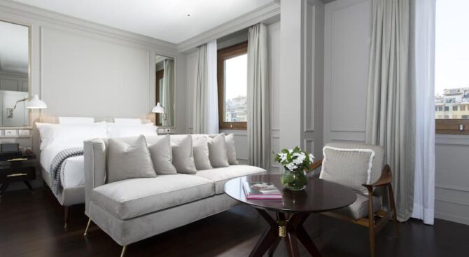 Отель Portrait Firenze один из лучших во Флоренции. Из окон номеров отеля открывается роскошный вид на реку Арно. В каждом номере есть выход на балкон, где вы можете насладиться видом. До известного моста Понте-Веккью всего 30 м.