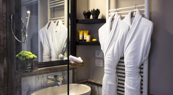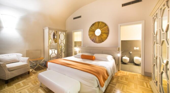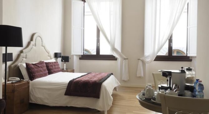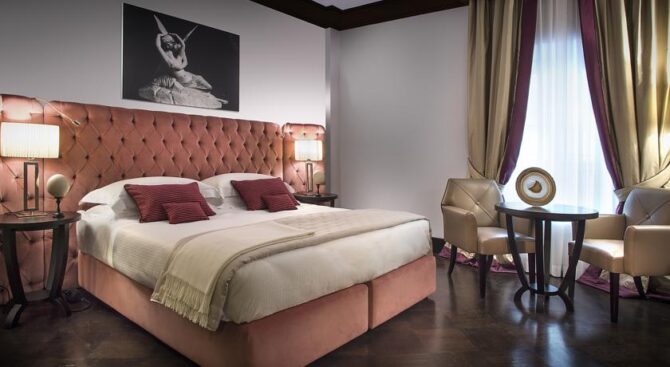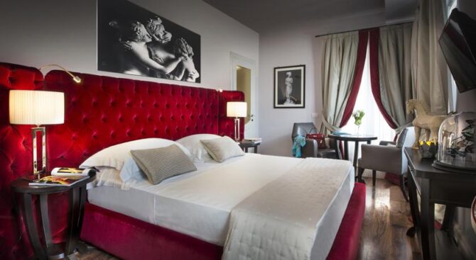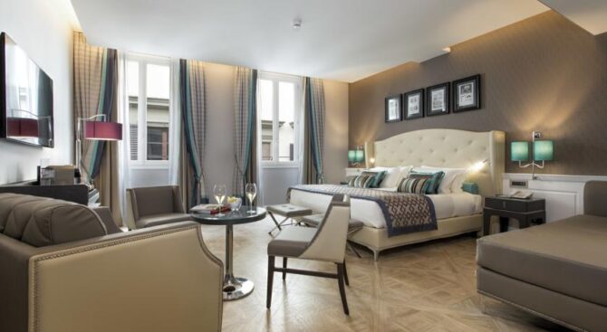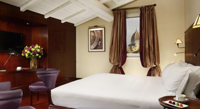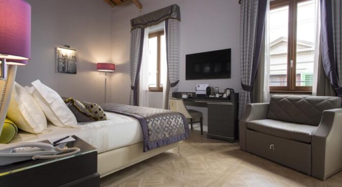 В самом центре Флоренции находится отель Grand Amore Hotel and Spa, на расстоянии 350 метров от собора Санта Мария-дель-Фьоре. Это полноценный четырехзвездочный отель, есть люксы, стандартные и улучшенные номера.Номера обставлены в классическом стиле, есть телевизор, интернет, спутниковое ТВ, стационарный телефон, кондиционер, мини-бар. Номера оборудованы современной ванной комнатой, есть фен, халаты и тапочки, необходимый набор косметики.