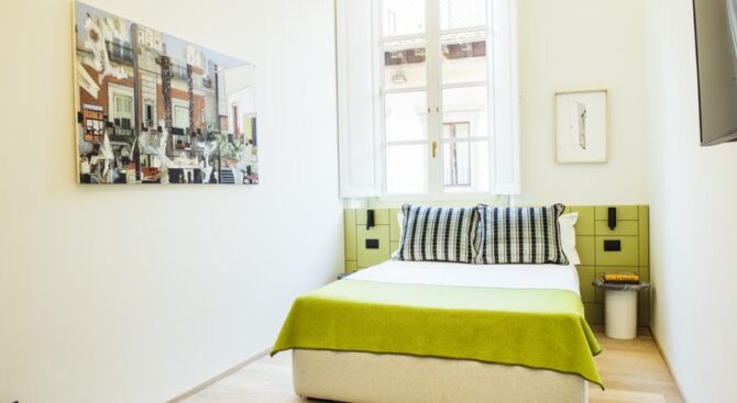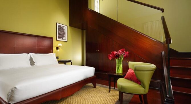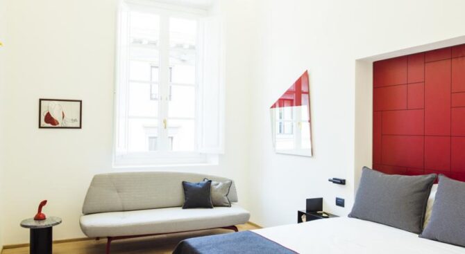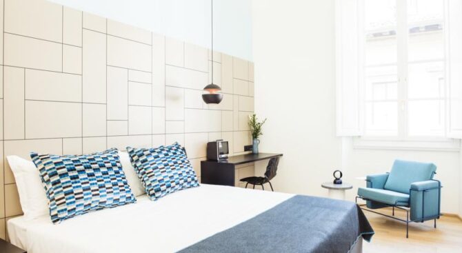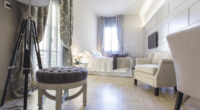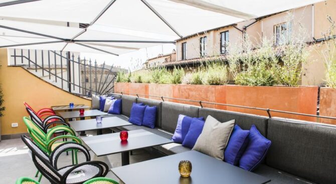Отель Hotel Mil во Флоренции – уникальное место, которое пользуется большим спросом среди туристов. Это ультрасовременный отель, который украшен картинами художников – модернистов. Сама гостиница находится в центре города, в старинном здании, но интерьер ее выполнен в современном стиле, включая в себя и мебель, и предметы декора. На крыше оборудована просторная терраса, с которой открывается отличный вид на старый город.