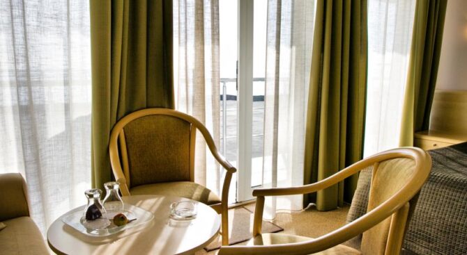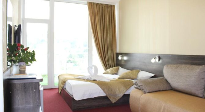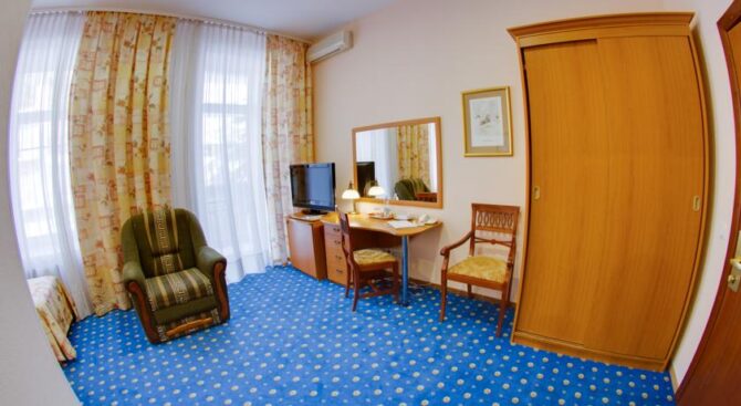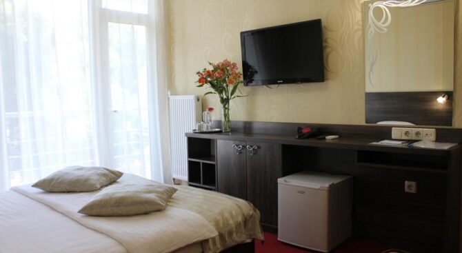 Главный «конек» отеля – его удобное расположение в Ялте. Бристоль находится в центре города поблизости от всех достопримечательностей и развлечений. Дорога до пляжа займет не более 5 минут, а с автобусной остановки, которая находится рядом с отелем, можно доехать до аэропорта Симферополя. В отеле Бристоль более 100 номеров и апартаментов. Все комнаты оснащены кондиционерами, а на окнах – светонепроницаемые шторы, что позволяет комфортно отдыхать в дневное время. В ванных комнатах гости найдут гигиенические принадлежности и полотенца.