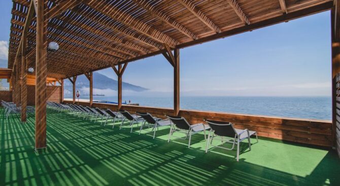 Отель Левант расположен на первой береговой линии и располагает собственным частным пляжем. В 4-этажном комплексе гостям предоставляются просторные номера с мебелью, санузлом и огромными во всю стену панорамными окнами. Во всех комнатах есть выход на балкон с видом на море. Перед отелем обустроена детская игровая зона с искусственным газоном, качелями, горками, а также несколько зон отдыха с навесами от солнца.