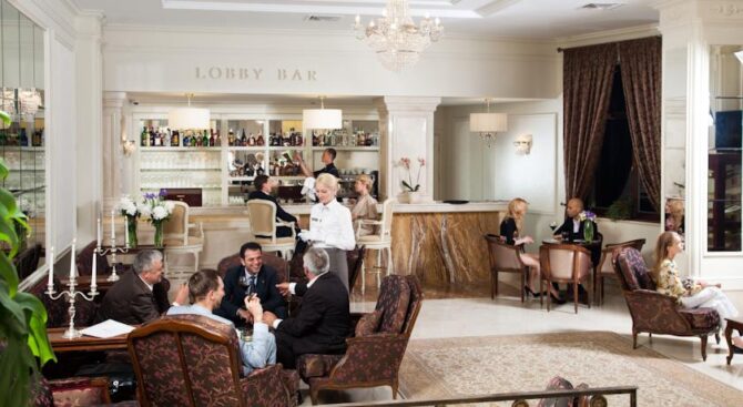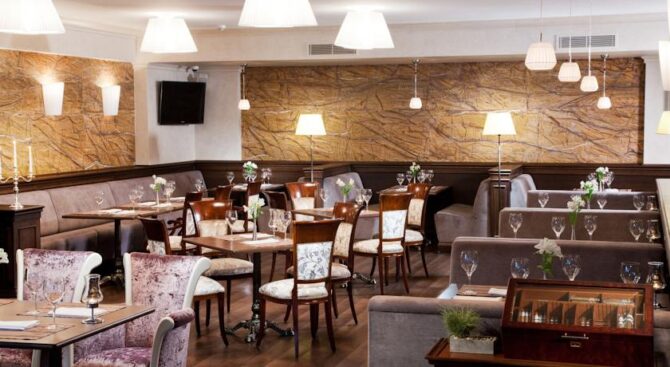 Вкуснейшими блюдами и закусками английской и ирландской кухни гостей угощают в ресторане с роскошным интерьером или на открытой террасе перед входом в отель. Провести приятные минуты блаженства можно в спа-салоне, а позаниматься спортом – в тренажерном зале с современным оборудованием.