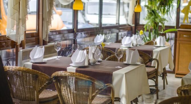 В ресторане Эко отеля Левант отдыхающих ожидают щедрые завтраки, а также обеды и ужины из местных крымских и европейских блюд. А на пляже в течение всего дня работает бар, где можно заказать прохладительные и алкогольные напитки. Одно из преимуществ этого отеля Ялты перед другими вариантами размещения на курорте – возможность бесплатно посещать Приморский парк с аттракционами, кафе и тенистыми аллеями, который расположен рядом с гостиничным комплексом. Поблизости от эко-отеля Левант также находятся набережная Ялты и храм Александра Невского.