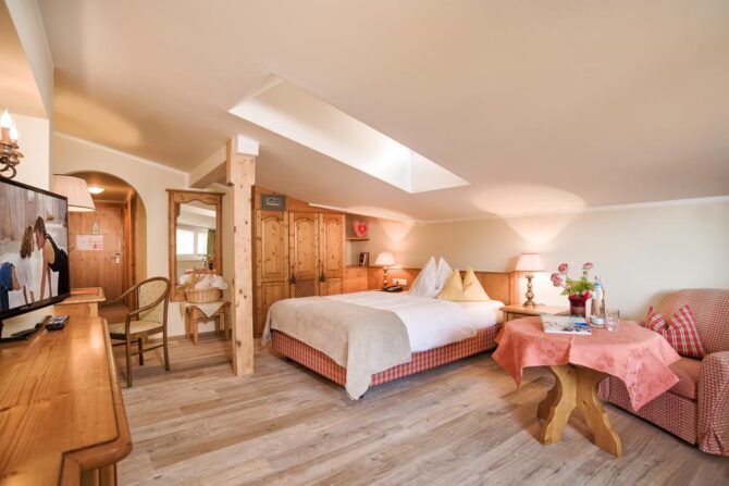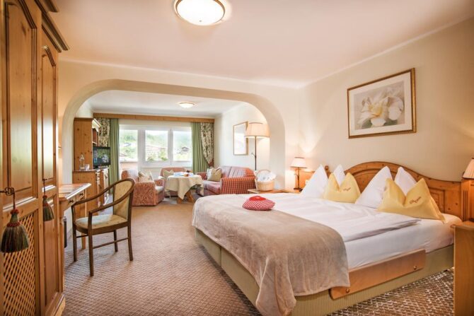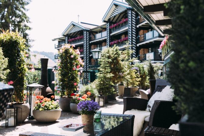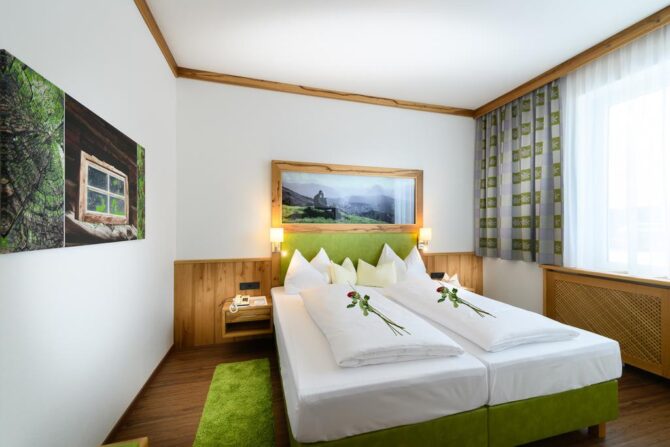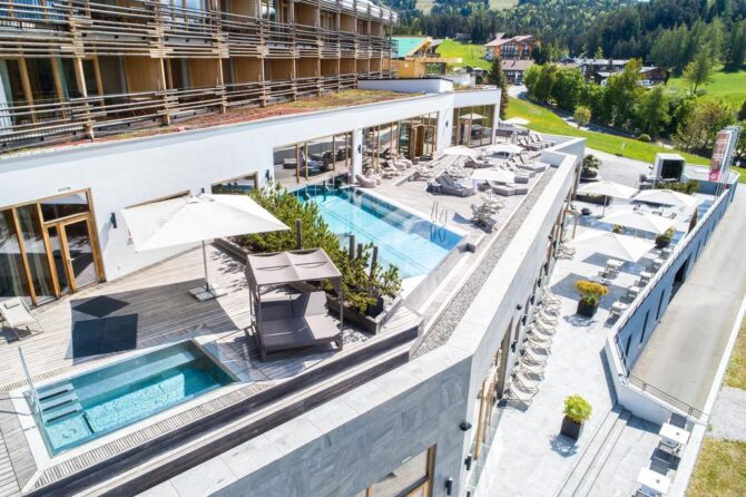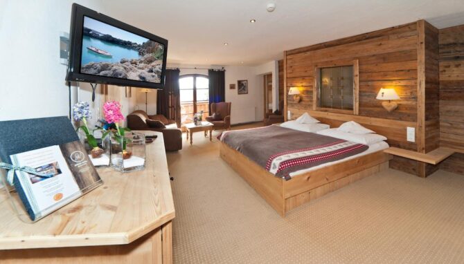 Отель класса люкс находится в полукилометре от подъемника Gschwandtkopf. Кроме роскошных номеров и благоустроенных террас комплекс предоставляет услуги спа-центра с несколькими саунами, гидромассажной ванной, двумя бассейнами. В спа работают косметические и массажные кабинеты. Оздоровительные процедуры проводятся в биосауне и паровой бане. Для спокойного отдыха создана библиотека с фондом в 2000 экземпляров книг. Завтрак включен в оплату. Ресторан специализируется на интернациональной кухне. Диетические блюда изготавливаются по предварительному заказу. Летом сюда приезжают любители маунтинбайка. Горные велосипеды выдаются на прокат бесплатно.