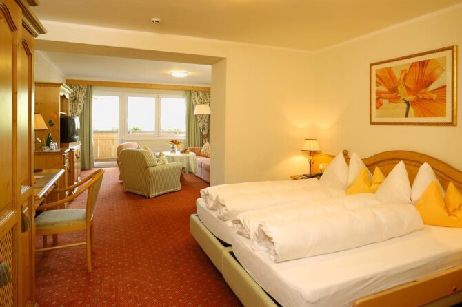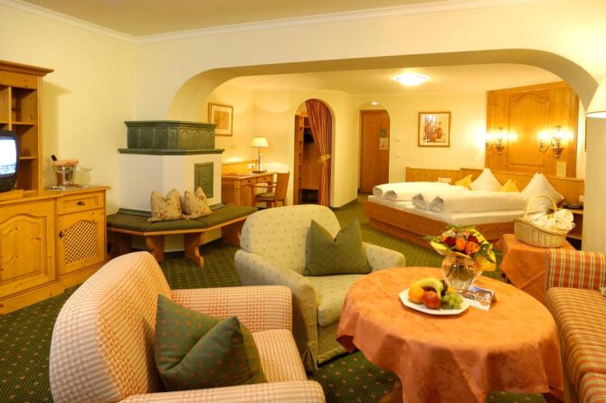 4-звездочный отель находится в самом центре Зеефельда. К услугам гостей – сауна, солярий, бассейн, крытые и открытые детские игровые площадки. Оборудован современный тренажерный зал. Работают косметические и массажные кабинеты. Завтрак накрывается по шведской системе. После обеда подается чай с домашними пирожными. В баре проводятся вечера «живой» музыки. Для спокойного отдыха предусмотрены библиотека и лаундж-зона с камином. Открытая парковка бесплатная, за место в гараже отеля придется заплатить. До ближайших подъемников ходит бесплатный лыжный автобус.
