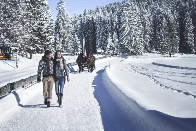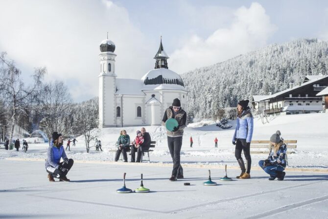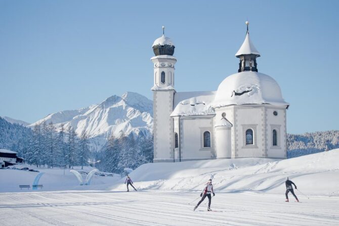Горнолыжные трассы Зеефельда скорее всего разочаруют любителей экстрима. Они относительно пологие и относятся к синему, зеленому и красному уровню сложности. Склоны обслуживают 25 подъемников и канатная дорога. Снега много, солнечных дней тоже. На всякий случай на трассах установлены снежные генераторы. Некоторые отели дарят своим гостям карты для льготного проезда и пользования олимпийскими объектами. Кроме лыж здесь можно прокатиться на санках по 3-х километровому спуску и на автомобильных шинах по бывшему олимпийскому бобслейному желобу. На курорте открыты школы по обучению начинающих горнолыжников, конькобежцев и игроков в кёрлинг.