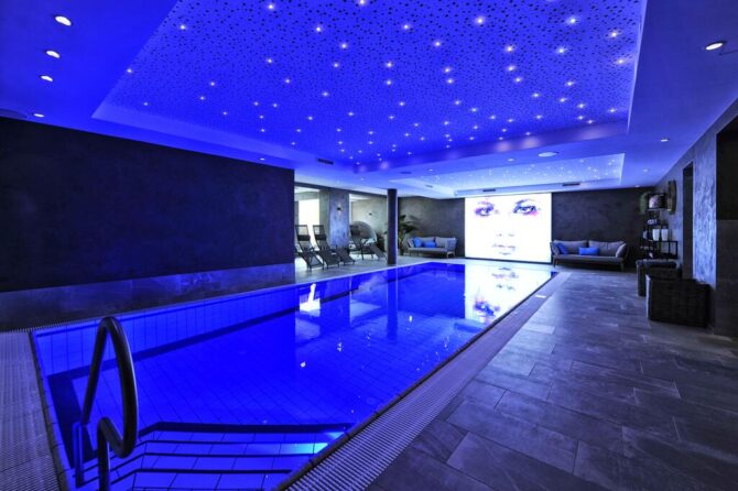 4-звездочный улучшенный отель находится в 150 метрах от канатной дороги и подъемника Rosshütte. Недавно владельцы обновили спа-центр, занимающий площадь 3300 кв. м. На территории отеля работают сауны, лакониум, ароматическая паровая баня, парная с альпийскими травами, тепидарий с горячими камнями, ледяная комната с ледяным фонтаном, 2 солярия, тренажерный зал, косметические и массажные кабинеты. К услугам гостей – полупансион (30-40 евро), парковка со станцией зарядки электромобилей, лыжехранилище с сушилкой, библиотека, терраса для загара в зимнем саду.