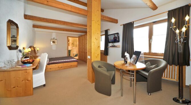 Отличный вариант для пары или путешественника, решившего отдохнуть от всех. В номерном фонде только люксы и улучшенные двухместки. Отель расположен в самом центре Зеефельда рядом с садами Курпарка. В спа-центре установлены биосауна, гидромассажные ванны с панорамой, паровая баня, ванна Кнайпа, инфракрасная кабина, массажный и косметический кабинет. Постояльцам предоставляется 30% скидка на посещение гольф-академии курорта. Утром подается завтрак. В ресторане Mocca-Mühle можно заказать блюда тирольской кухни и свежую выпечку.
