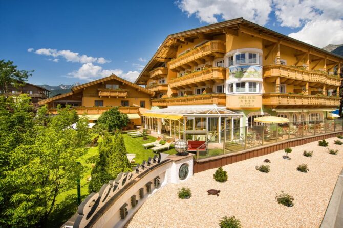 Отель в альпийском стиле расположен в пешеходной зоне Зеефельда в 200 метрах от ж/д станции. Комплекс предлагает классические гостиничные номера и апартаменты. Место ценят семейные пары с детьми. Ресторан кормит завтраками и ужинами, в детском клубе накрывается обед по детскому меню. Большой спа-центр разделен на две зоны – взрослую и для маленьких постояльцев. В спа-клубе детей угощают пирожными и мороженым. Для них обустроены два бассейна – лягушатник и с горками. Взрослые посетители пользуются услугами сауны, парной, бассейна и гидромассажной ванны. Вечером открываются 2 дискозала, бильярдная, зал с настольным теннисом, современный тренажерный комплекс. В ресторане устраиваются вечера с «живой» музыкой.