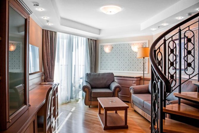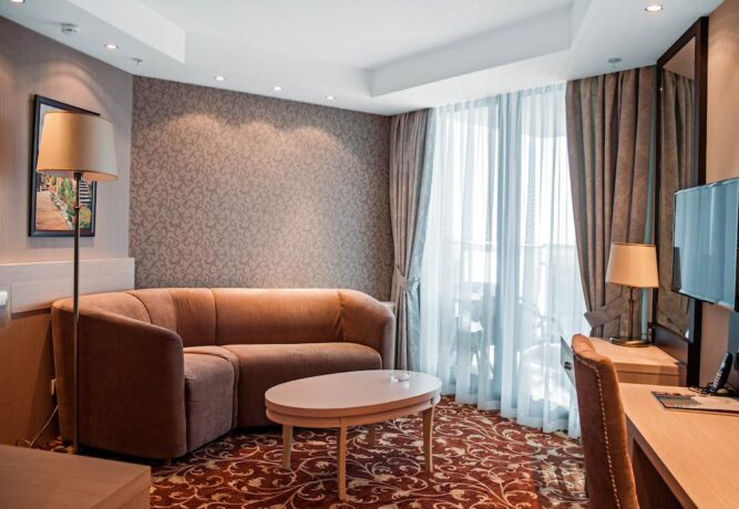 В поистине поражающем своими размерами оздоровительном комплексе «Дагомыс» обустроено огромное количество помещений для проживания постояльцев. В номерах царит уютная домашняя атмосфера, обстановка располагает на крепкий спокойный сон.