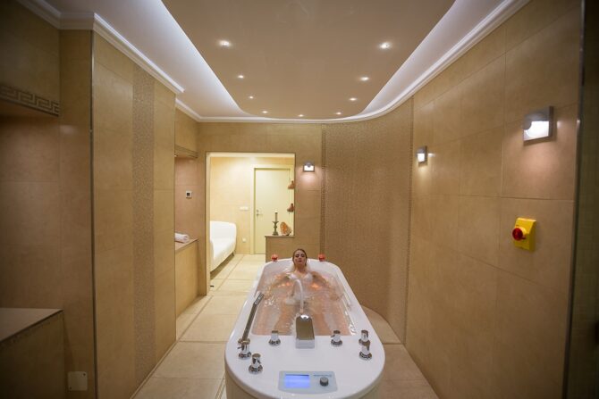 Так как этот комплекс имеет в своем распоряжении собственный спа-центр, следует поговорить об услугах, которые в нем предоставляются. Все гости заведения могут ходить в парную, сауну или финскую баню. На территории комплекса есть крытый бассейн, оснащенный каскадом водопадов, чем активно пользуются женщины, которые очень любят ухаживать за своим телом.