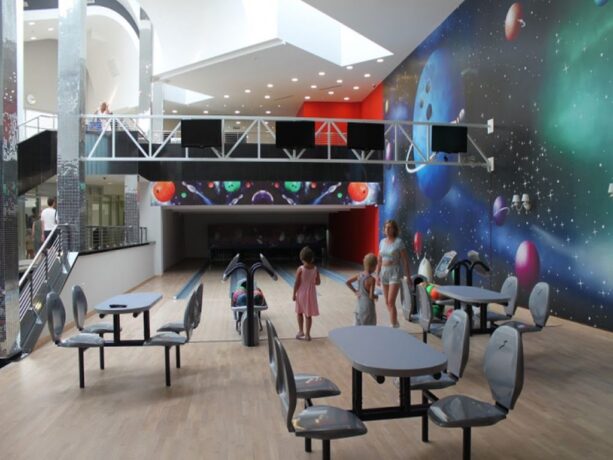 Взрослых также ждет огромное количество развлечений. Даже во время отпуска вы можете продолжать заниматься спортом, поскольку оздоровительный комплекс имеет в своем распоряжении тренажерный зал с отделениями для фитнеса и йоги, а также площадки для большого тенниса, волейбола, баскетбола и других командных игр. На территории заведения построены боулинг-клуб и бильярдная, в которых можно весело провести время с друзьями и близкими.