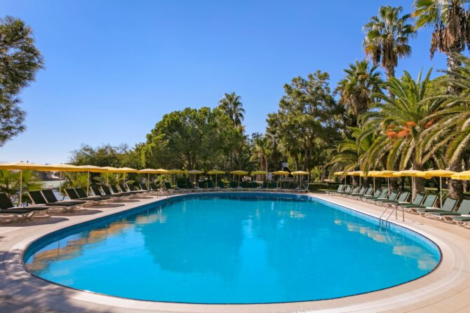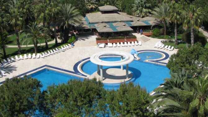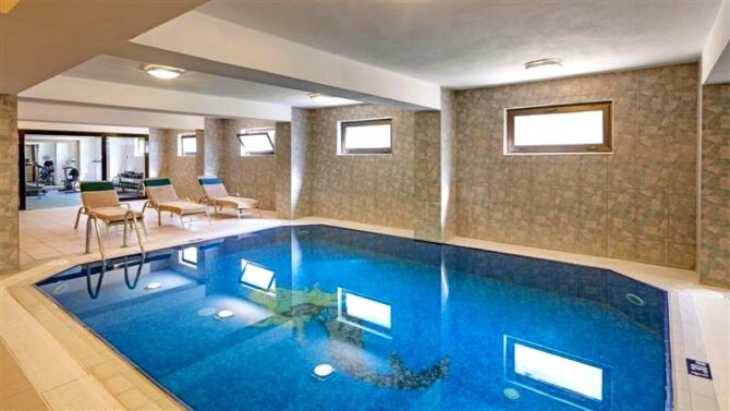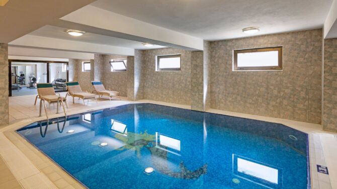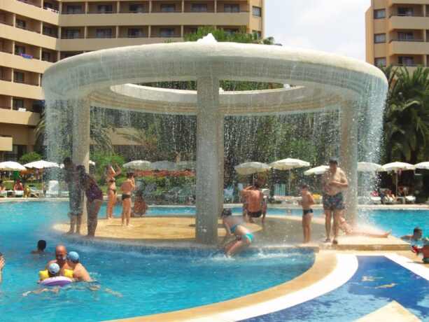Провести свое время приятно и с пользой можно возле бассейнов. Здесь есть два открытых, с глубиной 2.2/2 м, а также крытый для прохладного сезона на 1.3 метра. Веселью способствуют три водных горки.