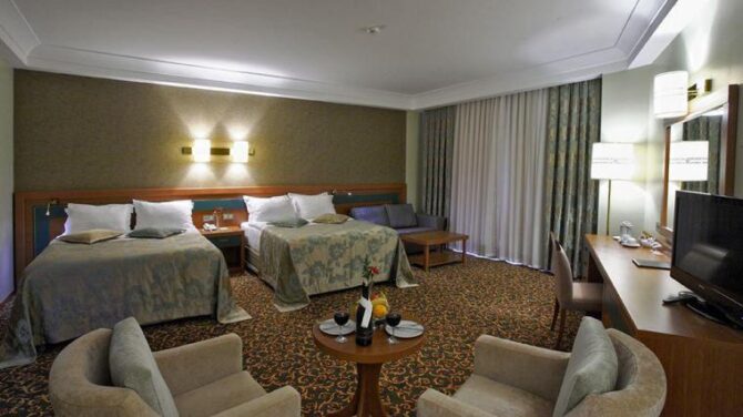 В Ozkaymak Incekum Hotel 5* 350 номеров, из которых 338 стандартных на три человека со спальней и ванной. 12 – junior suite на четверых, а также 3 для инвалидов. Размещение домашних животных невозможно, так как запрещено администрацией.