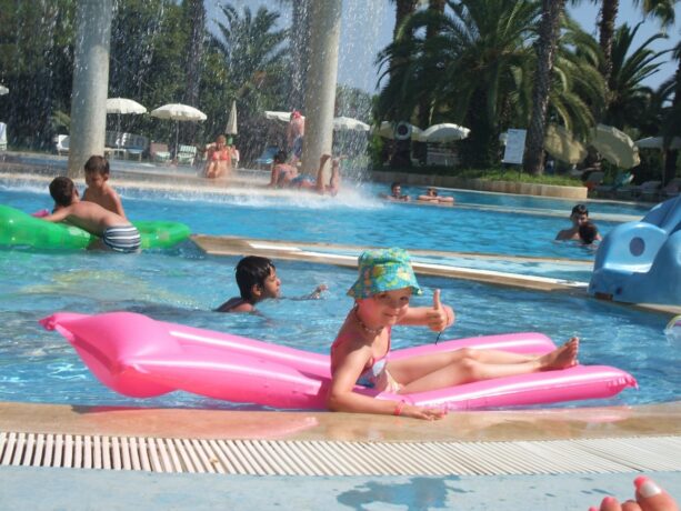 Елизавета, 28 лет: «Я отдыхала с трехлетней дочкой и не испытала никаких трудностей, номер нам дали с видом на море без доплаты. Детское меню не слишком разнообразное, но мое чадо всеядное, поэтому я кормила ее с общего стола рисом, оладьями, картошкой, курицей, фруктами. На пляже не могла отказать в фаст-фуде, знаю, что вредно, но она очень просила. Кстати, в море легко входить по песку и глубина отличная. Понравилось отношение персонала: все подмигивали и старались улучшить отдых маленькой принцессы».