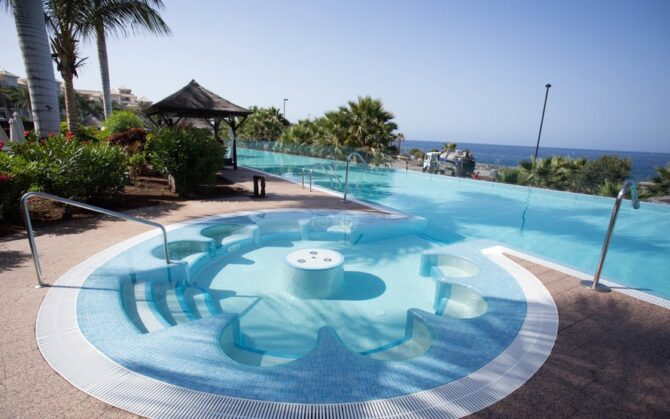На территории Palacio de Isora разместились крытый бассейн с необычной голубой подсветкой, 5 массажных кабинетов, гидромассажные ванны, всевозможные сауны, включая травяную аромапарную, разнообразные души — от ароматического и термального до хромотерапевтического, и специальный float-бассейн с крутым соленым раствором, по плотности напоминающим воду Мертвого моря. Он позволяет погрузиться в состояние, близкое к невесомости — процедура чрезвычайно полезная для суставов, кожи и обретения внутренней гармонии.