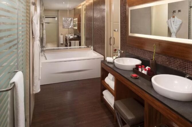 Для самых требовательных гостей внутри курорта Palacio de Isora существует отдельный бутик-отель Red Level, предназначенный только для взрослых. Помимо сьютов с джакузи на террасе и вилл с бассейнами он предлагает дополнительные VIP-услуги: отдельный лаунж с собственной стойкой регистрации, круглосуточный консьерж-сервис и личный мажордом, приватные бассейны и бизнес-центр с библиотекой, приоритет при бронировании в ресторанах и SPA-центре.