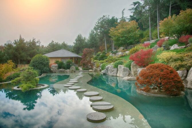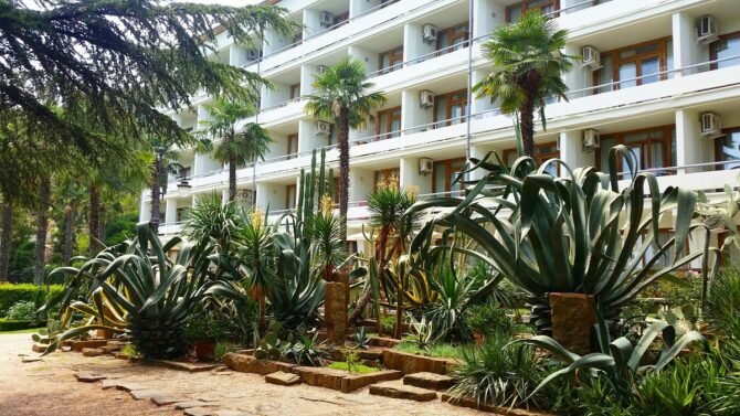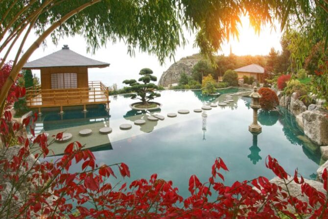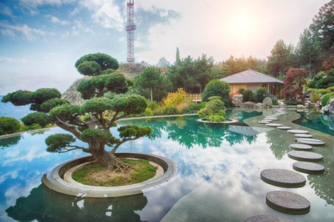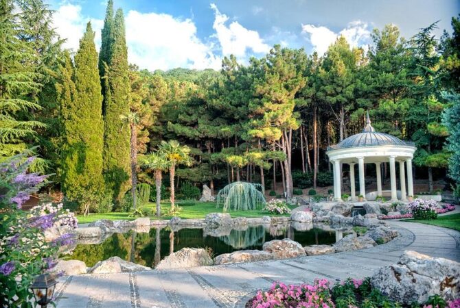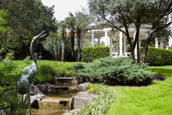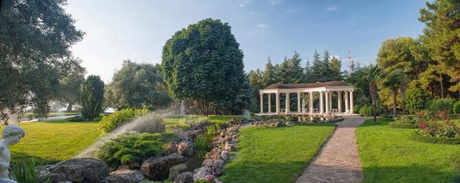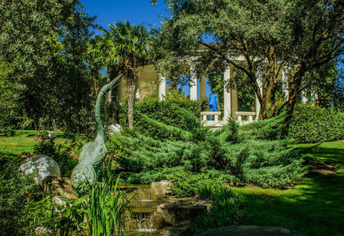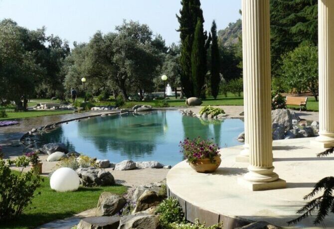 Кроме того, что в санатории ведут прием высококлассные врачи, сама территория настолько красива и приятна, что находясь здесь, уже расслабляешься. Площадь комплекса — более 25 га, и местный парк называют природным памятником дизайнерского искусства. В нем создан Японский сад, скульптуры и беседки, водопады, посажена маслиновая роща.