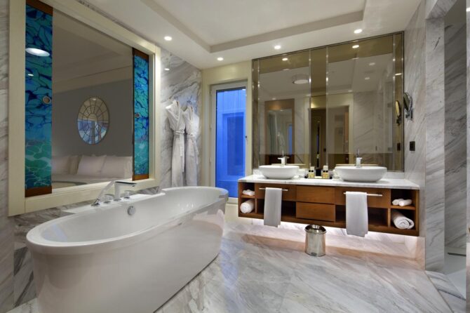 Во всех номерах к услугам гостей предоставлены халаты и тапочки, электронный сейф, заполненный мини-бар, чайнике набором для приготовления чая, кофе, телевизор со спутниковым ТВ. Полноценный балкон есть не во всех номерах — этот вопрос лучше уточнить при бронировании. В бунгало расположены семейные номера-апартаменты, состоящие их двух просторных комнат. Во всех номерах, кроме стандартных, в ванной комнате есть душ-ванна с функцией джакузи.