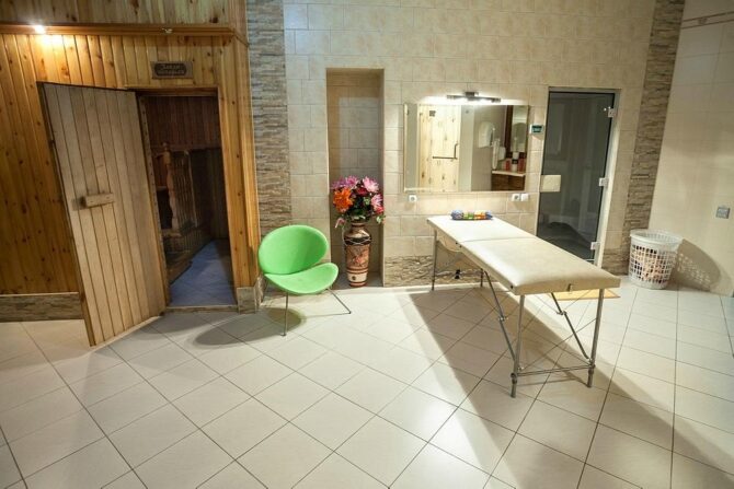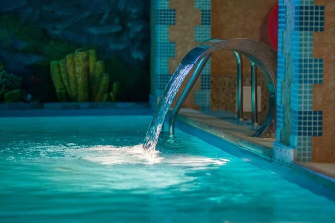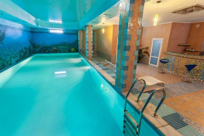 Для максимального комфорта гостей на территории парк-отеля «Глория» функционирует закрытый бассейн. В зависимости от времени года и погодных условий вода в нем подогревается до +28 градусов. Бассейн достаточно большой. Его длина 11 метров, ширина – 4 м, глубина – 2 м. Вокруг оборудована зона отдыха с шезлонгами и мебелью из ротанга. Благодаря такому подходу, отдыхающие могут расслабиться и насладиться любимым напитком во время водных процедур.