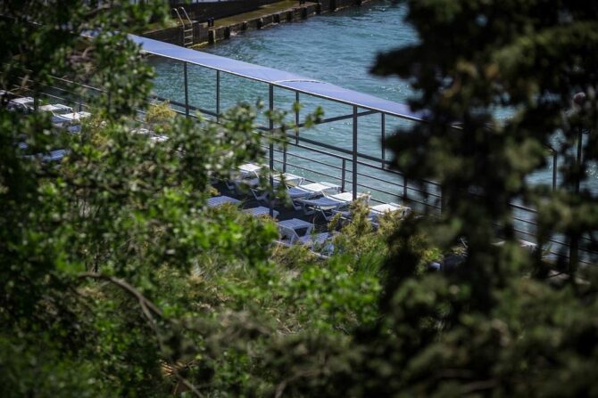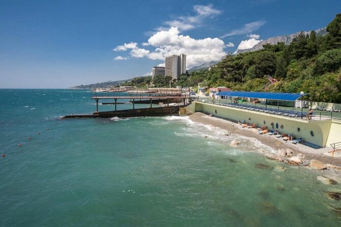 - Дюльбер – принадлежит одноименному санаторию. Вход платный, чтобы попасть на берег, нужно пройти через парковую зону. Здесь есть необходимая пляжная инфраструктура, работает кафе;