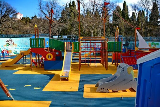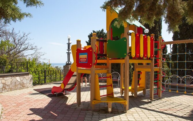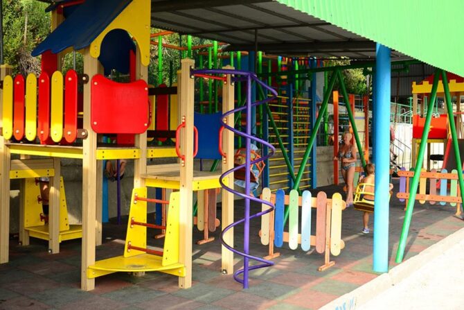 На улице, в закрытом дворике, находится просторная детская площадка. Для маленьких постояльцев установлены качели, игровой домик с горкой, песочница. На площадке комфортно себя будут чувствовать дети любого возраста. Игровая зона соответствует всем требованиям безопасности. От травм в результате падений защищает специальное напольное покрытие.