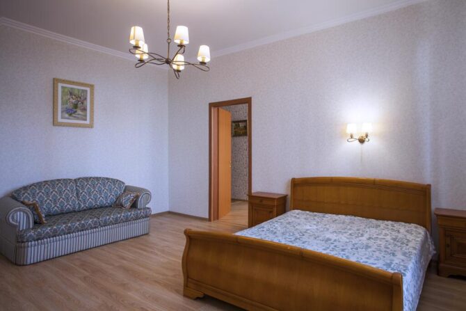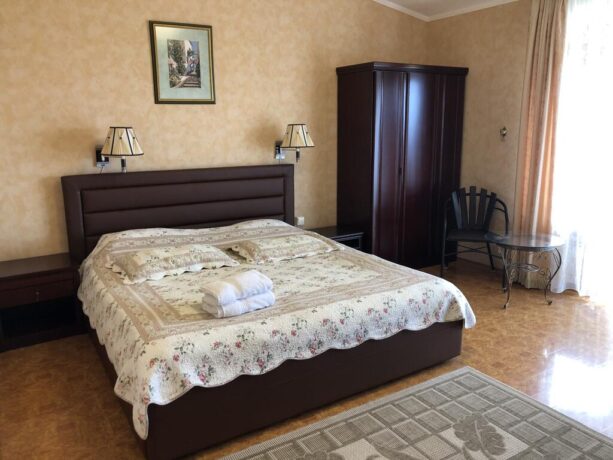 Вне зависимости от категории в каждой гостевой комнате установлена современная мебель, кровать с ортопедическим матрасом. Для большего комфорта есть индивидуальный санузел, кондиционер, спутниковое телевиденье, электрический чайник.