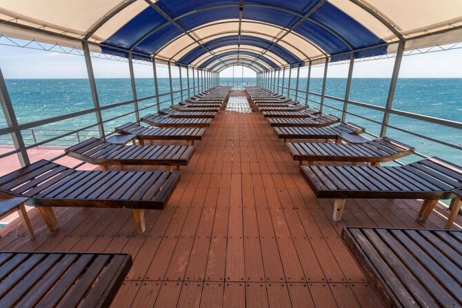 - Пляж отеля «Репкт-Холл» — посетить его можно совершенно бесплатно, а вот за пользование пляжной атрибутикой придется доплачивать.
