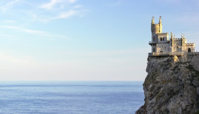 - Ласточкино гнездо – замок в миниатюре. Визитная карточка и символ Крыма. На отвесной 40 метровой скале расположился дворец. Высокая башня, острые шпили, выполненные в готическом стиле, напоминают Средневековье;