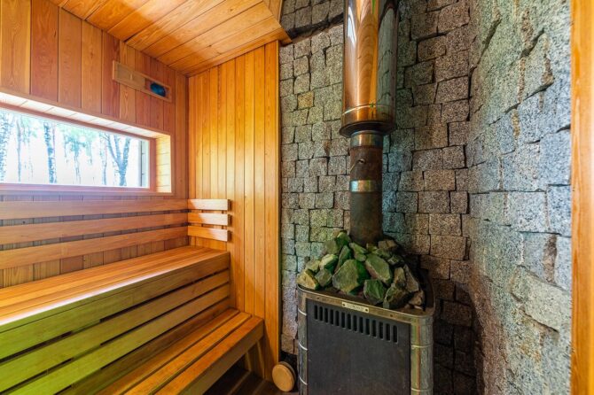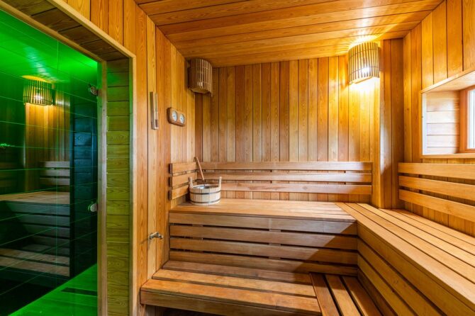 Ну и как же можно провести без бани нормальный отдых? Здесь она расположена в отдельной постройке, в которой находится большой бассейн, сауна и комната для отдыха. Стоит заметить, что сауна солевая: основой жара служат разогретые солевые блоки, которые оказывают на организм человека благоприятное воздействие.