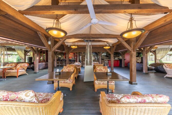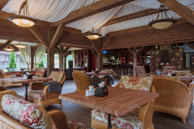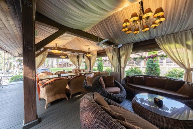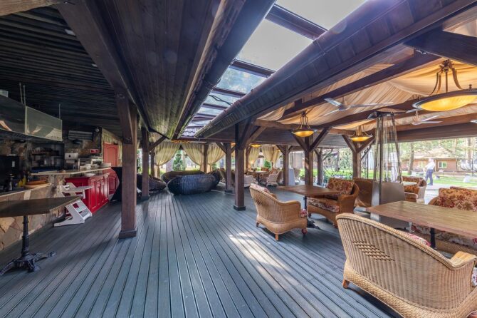 Если есть желание, то вы сможете сходить на рыбалку или сделать велосипедную прогулку. Не забыли и про любителей энергичного отдыха, им предоставлен прокат велосипедов и другого спортивного инвентаря. Большое внимание здесь уделяется культурной программе, часто проводятся концерты и музыкальные вечера с живой музыкой. Чтобы сделать времяпровождение самых маленьких отдыхающих парк-отеля занимательным, на территории сделана детская площадка.