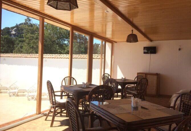 Для поклонников плавания в комфортных условиях во дворе гостиницы оборудован компактный бассейн. Рядом с ним установлены комфортабельные шезлонги и несколько солнцезащитных зонтиков. Места хватает всем отдыхающим даже в период высокого сезона.