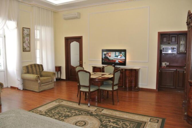 Наталья, Москва “Кода приезжаешь на отдых, хочется роскоши, себя порадовать. В прошлом году были в Ялте и решили остановиться в легендарном отеле “Таврида”, много о нем слышали. Шикарное здание, очень красивое, и видно, что за ним ухаживают. Жили в апартаментах, они прекрасны. Все современное и красивое, хорошая мебель и техника. Уборка ежедневная, все меняют и пополняют наборы в ванной. Отдельно хочется сказать про архитектуру, чувствуешь себя звездой, если живешь в “Тавриде”. Нам очень понравилось!”